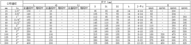 【Q41H鍛鋼三片式硬密封球閥主要連接尺寸及重】